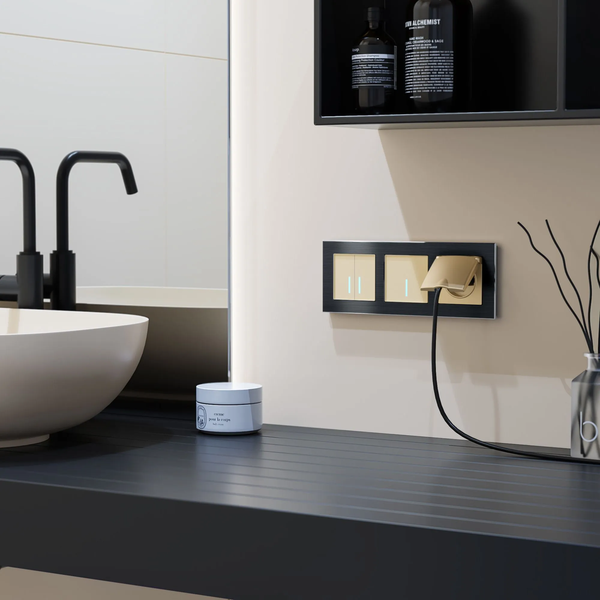 • Совместимость с рамками Werkel : легко вписывается в любой интерьер благодаря стильному дизайну и цвету шампань — подходит под все серии рамок Werkel