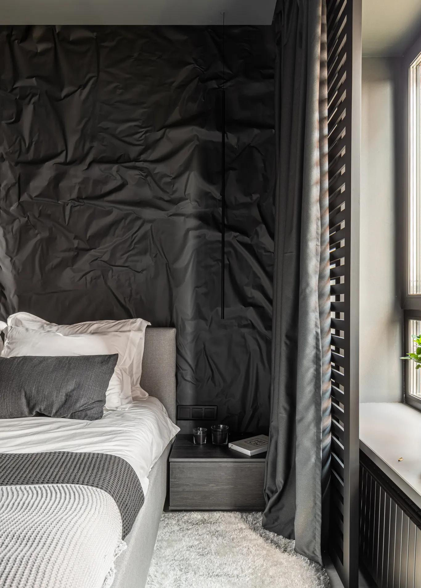 Гармоничным дополнением к обновленной спальне стали электроустановочные изделия Werkel™. Они были выполнены в темном исполнении, что идеально соответствовало общему настроению интерьера. Надежные механизмы с черными лицевыми панелями обрамлены минималистичными рамками из коллекции Stark, изготовленными из негорючего поликарбоната. Эти детали не только выполнили свою функциональную задачу, но и стали стильным акцентом в интерьере .